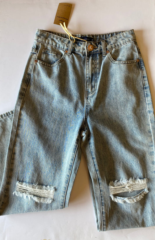 HIGH WAIST WIDE LEG DISTRESSED JEANS-RJH5484