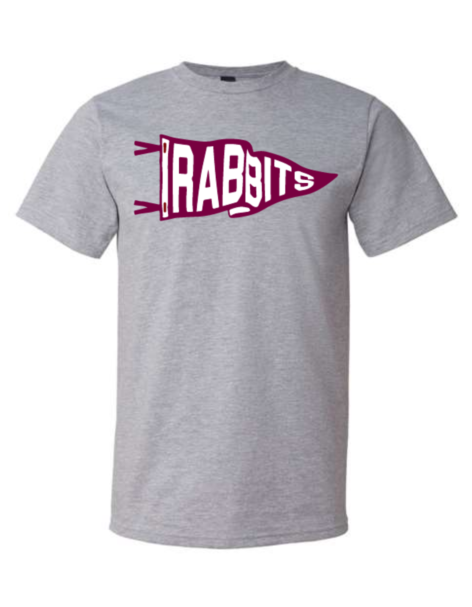 Show your support for the Atlanta rabbits with this maroon and white "rabbits" pennant on a heather grey t-shirt. Printed DTF on soft heather grey fabric, it’s perfect for out East TX southern game-day vibes. Size up for a relaxed, oversized fit that keeps you comfortable while cheering on your team.